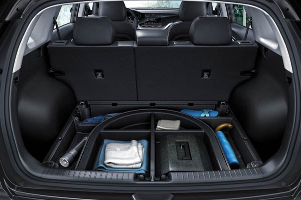 The generous interior space can fit up to five passengers. You also get a concealed under-floor storage tray for extra inventory. The standard 60/40 split-folding rear seat allows you to customize the area for up to 63.2 cubic feet of cargo space. The driver's seat has a 10-way power adjustment for optimal driving comfort, and both command seats are high-positioned to give a great view of the road. Of course, there are also heated and ventilated seats, a heated, leather-wrapped steering wheel, and a power sunroof available.
