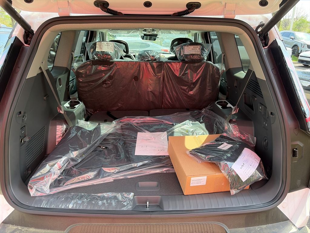 Equipped with 3rd row seats: split-bench, 4-Wheel Disc Brakes, 8 Speakers, ABS brakes, Air Conditioning, Alloy wheels, AM/FM radio, Apple CarPlay & Android Auto, Auto High-beam Headlights, Auto-dimming Rear-View mirror, Automatic temperature control, Brake assist, Bumpers: body-color, Cargo Net, Carpeted Floor Mat, 7-Passenger, Delay-off headlights, Driver door bin, Driver vanity mirror, Dual front impact airbags, Dual front side impact airbags, Electronic Stability Control, Emergency communication system: 911 Connect, Exterior Parking Camera Rear, Four wheel independent suspension, Front anti-roll bar, Front Bucket Seats, Front Center Armrest w/Storage, Front dual zone A/C, Front reading lights, Full SynTex Synthetic Leather Seat Trim, Fully automatic headlights, Garage door transmitter: HomeLink, Heated and Ventilated Front Bucket Seats, Heated door mirrors, Heated front seats, Heated steering wheel, Illuminated entry, Knee airbag, Low tire pressure warning, Memory seat, Navigation System, Occupant sensing airbag, Outside temperature display, Overhead airbag, Overhead console, Panic alarm, Passenger door bin, Passenger vanity mirror, Power door mirrors, Power driver seat, Power Liftgate, Power moonroof, Power passenger seat, Power steering, Power windows, Radio data system, Radio: AM/FM/HD /SiriusXM, Rain sensing wipers, Rear air conditioning, Rear anti-roll bar, Rear reading lights, Rear seat center armrest, Rear window defroster, Rear window wiper, Reclining 3rd row seat, Remote keyless entry, Security system, Speed control, Speed-sensing steering, Split folding rear seat, Spoiler, Steering wheel memory, Steering wheel mounted audio controls, Telescoping steering wheel, Tilt steering wheel, Traction control, Trip computer, Turn signal indicator mirrors, Variably intermittent wipers, Ventilated front seats, and Wheels: 19 Black and Machined Finished Alloy. Price includes: $10000 - Kia Customer Cash. Exp. 05/04/2026 $500 - Military Program. Exp. 05/04/2026