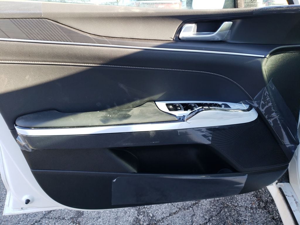 Equipped with 4-Wheel Disc Brakes, 6 Speakers, ABS brakes, Air Conditioning, Alloy wheels, AM/FM radio: SiriusXM, Auto High-beam Headlights, Automatic temperature control, Brake assist, Bumpers: body-color, Carpeted Floor Mats, Delay-off headlights, Driver door bin, Driver vanity mirror, Dual front impact airbags, Dual front side impact airbags, Electronic Stability Control, Emergency communication system: Kia Connect (includes 1 year free trial), Four wheel independent suspension, Front anti-roll bar, Front Bucket Seats, Front Center Armrest, Front dual zone A/C, Front fog lights, Front reading lights, Fully automatic headlights, Heated door mirrors, Heated Front Bucket Seats, Heated front seats, Heated steering wheel, Illuminated entry, Knee airbag, Leather Shift Knob, Leather steering wheel, Low tire pressure warning, Navigation System, Occupant sensing airbag, Outside temperature display, Overhead airbag, Overhead console, Panic alarm, Passenger door bin, Passenger vanity mirror, Power door mirrors, Power driver seat, Power steering, Power windows, Radio data system, Radio: AM/FM Audio System, Rear anti-roll bar, Rear seat center armrest, Rear side impact airbag, Rear window defroster, Remote keyless entry, Security system, Speed control, Speed-sensing steering, Split folding rear seat, Sport steering wheel, Steering wheel mounted audio controls, Tachometer, Telescoping steering wheel, Tilt steering wheel, Traction control, Trip computer, Turn signal indicator mirrors, Variably intermittent wipers, and Wheels: 18 x 7.5J Gloss Black Machined Finish Alloy.