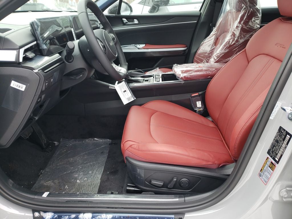 Equipped with GT-Line Red Interior Package (SynTex Seat Trim), 4-Wheel Disc Brakes, 6 Speakers, ABS brakes, Air Conditioning, Alloy wheels, AM/FM radio: SiriusXM, Apple CarPlay & Android Auto, Auto High-beam Headlights, Automatic temperature control, Brake assist, Bumpers: body-color, Carpeted Floor Mats, Delay-off headlights, Driver door bin, Driver vanity mirror, Dual front impact airbags, Dual front side impact airbags, Electronic Stability Control, Emergency communication system: Kia Connect (includes 1 year free trial), Four wheel independent suspension, Front anti-roll bar, Front Bucket Seats, Front Center Armrest, Front dual zone A/C, Front fog lights, Front reading lights, Fully automatic headlights, Heated door mirrors, Heated Front Bucket Seats, Heated front seats, Heated steering wheel, Illuminated entry, Knee airbag, Leather Shift Knob, Leather steering wheel, Low tire pressure warning, Navigation System, Occupant sensing airbag, Outside temperature display, Overhead airbag, Overhead console, Panic alarm, Passenger door bin, Passenger vanity mirror, Power door mirrors, Power driver seat, Power steering, Power windows, Radio data system, Radio: AM/FM Audio System, Rear anti-roll bar, Rear seat center armrest, Rear side impact airbag, Rear window defroster, Remote keyless entry, Security system, Speed control, Speed-sensing steering, Split folding rear seat, Sport steering wheel, Steering wheel mounted audio controls, Tachometer, Telescoping steering wheel, Tilt steering wheel, Traction control, Trip computer, Turn signal indicator mirrors, Variably intermittent wipers, and Wheels: 18 x 7.5J Gloss Black Machined Finish Alloy. Price includes: $500 - Military Program. Exp. 03/31/2026 KFA Dealer Choice Bonus Cash Program Not all customers may qualify for this offer. Please contact us with questions. Customer must finance through KFA