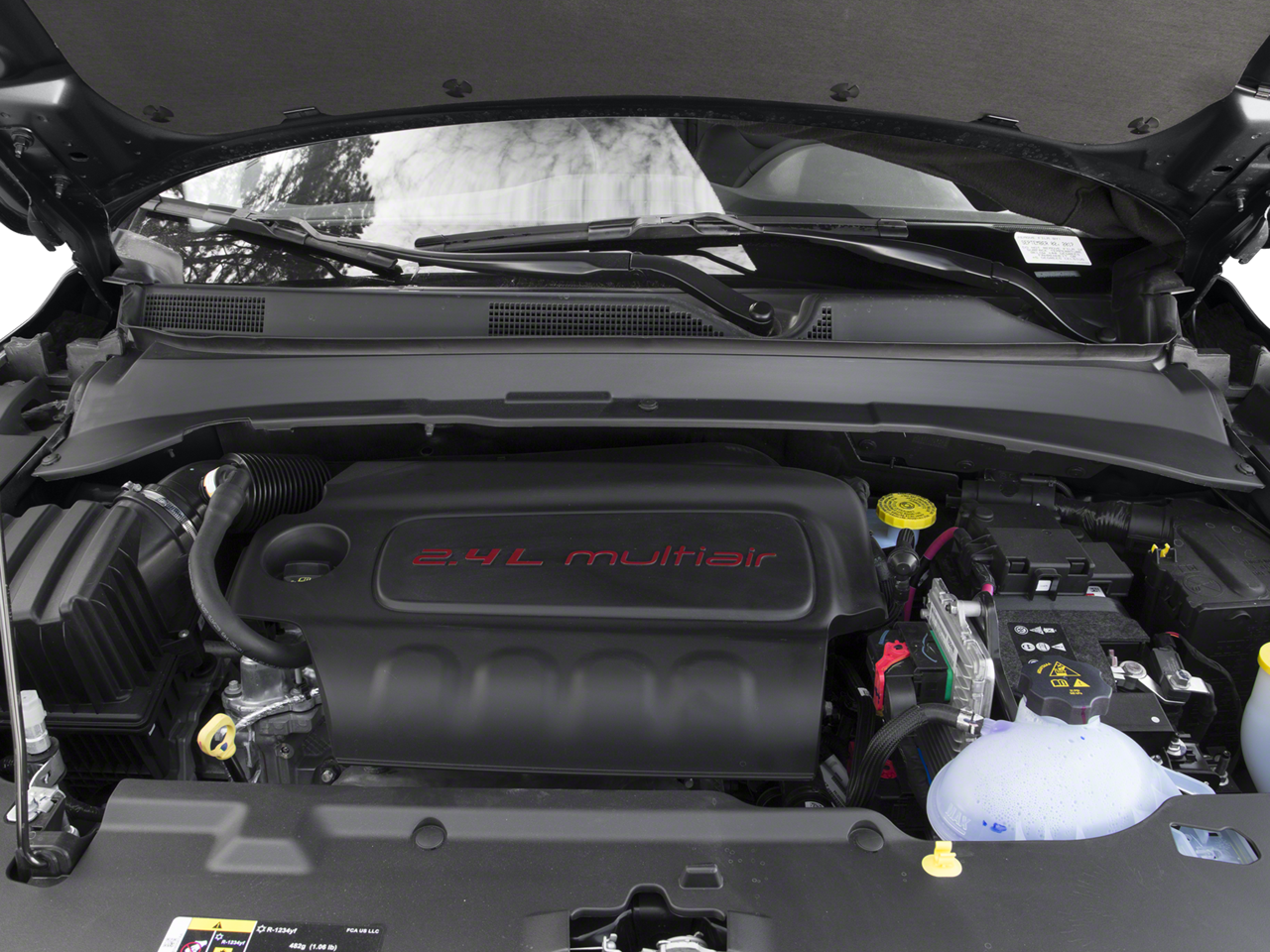 Equipped with Quick Order Package 27G, 4WD, 3.73 Axle Ratio, 4-Wheel Disc Brakes, 6 Speakers, ABS brakes, Air Conditioning, Alloy wheels, AM/FM radio: SiriusXM, Anti-whiplash front head restraints, Apple CarPlay/Android Auto, Auto-dimming Rear-View mirror, Automatic temperature control, Brake assist, Bumpers: body-color, Compass, Delay-off headlights, Driver door bin, Driver vanity mirror, Dual front impact airbags, Dual front side impact airbags, Electronic Stability Control, Four wheel independent suspension, Front anti-roll bar, Front Bucket Seats, Front Center Armrest w/Storage, Front dual zone A/C, Front fog lights, Front reading lights, Fully automatic headlights, Heated door mirrors, Heated front seats, Heated steering wheel, Illuminated entry, Knee airbag, Leather Shift Knob, Leather Trimmed Bucket Seats, Low tire pressure warning, Occupant sensing airbag, Outside temperature display, Overhead airbag, Overhead console, Panic alarm, ParkView Rear Back-Up Camera, Passenger door bin, Passenger vanity mirror, Power door mirrors, Power driver seat, Power steering, Power windows, Radio: Uconnect 4 w/8.4 Display, Rear anti-roll bar, Rear seat center armrest, Rear window defroster, Rear window wiper, Remote keyless entry, Roof rack: rails only, Security system, Speed control, Split folding rear seat, Spoiler, Steering wheel mounted audio controls, Tachometer, Telescoping steering wheel, Tilt steering wheel, Traction control, Trip computer, Turn signal indicator mirrors, Variably intermittent wipers, and Wheels: 18 x 7.0 Polished/Gray Pockets Aluminum.