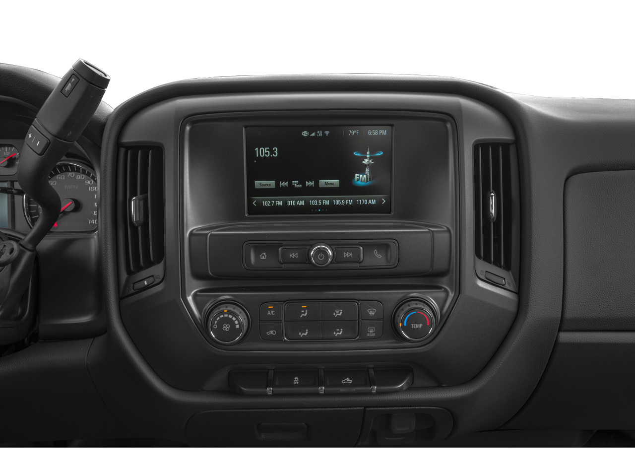 - Audio system, Chevrolet Infotainment System with 7" diagonal color touch-screen, AM/FM stereo with seek-and-scan and digital clock, includes Bluetooth® streaming audio for music and select phones.