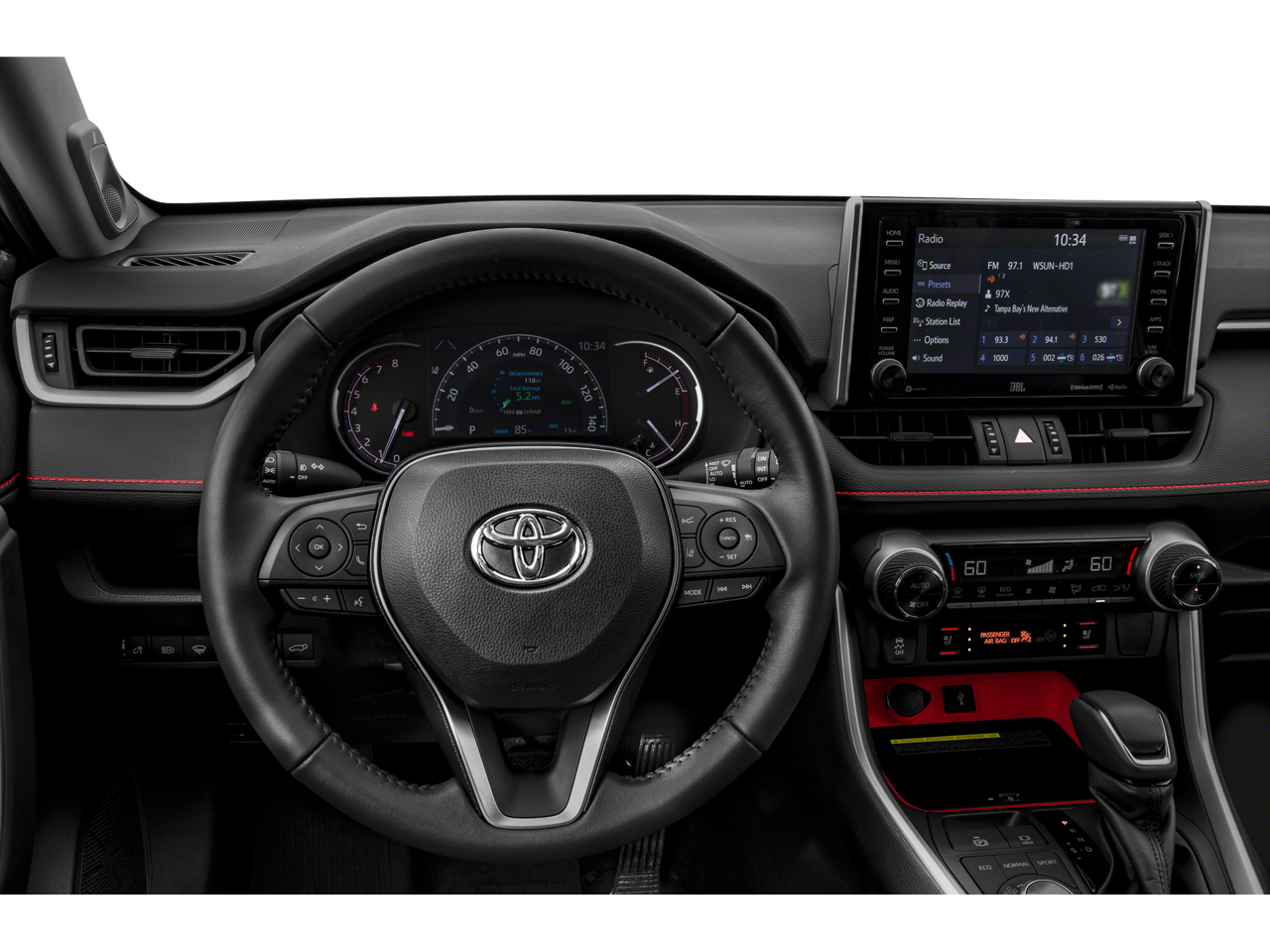 The RAV4's premium cabin features luxurious SofTex-trimmed seats, heated and ventilated for year-round comfort, as well as a heated steering wheel to keep your hands warm on chilly mornings. The expansive moonroof lets in plenty of natural light, creating an airy, open atmosphere, and the advanced 11-speaker JBL audio system delivers a concert-hall-quality listening experience. Seamless smartphone integration via Apple CarPlay and Android Auto keeps you connected and entertained, while the intuitive navigation system ensures you always reach your destination with ease.