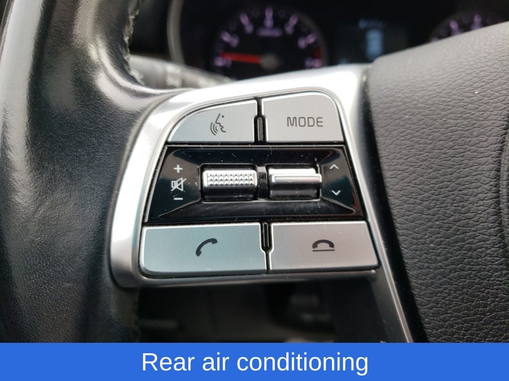 The spacious and versatile interior of the Telluride EX offers seating for up to 8 passengers, with the added convenience of 2nd Row Captain Chairs and a Power Liftgate. The premium leather-wrapped steering wheel and shift knob, along with the heated and ventilated front bucket seats, provide a luxurious touch to the cabin.