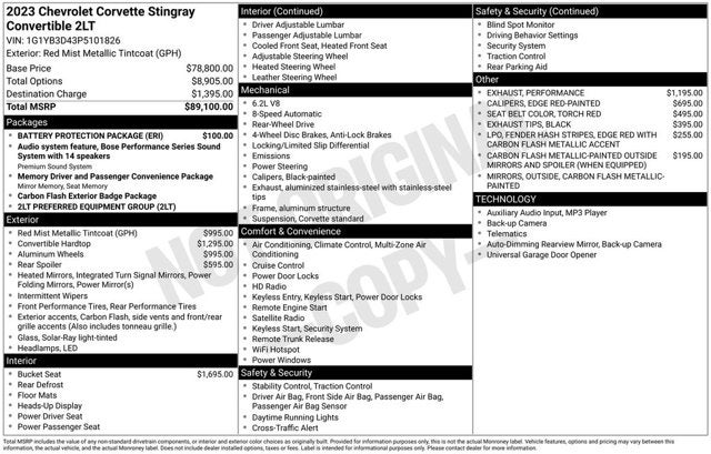 Red Mist Metallic Tintcoat 2023 Chevrolet Corvette Stingray 2LT CARFAX One-Owner.