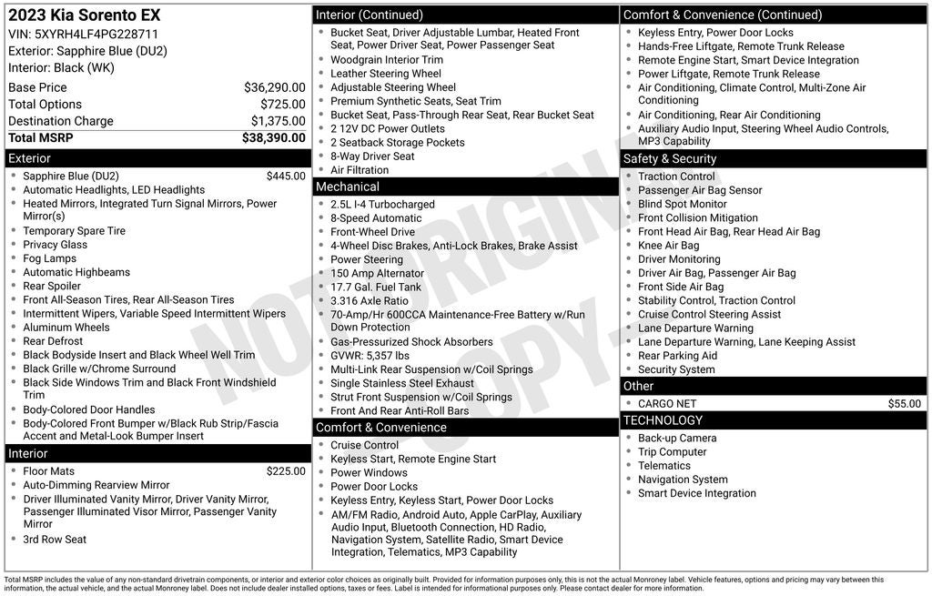 - Vehicle Name: Kia Sorento
