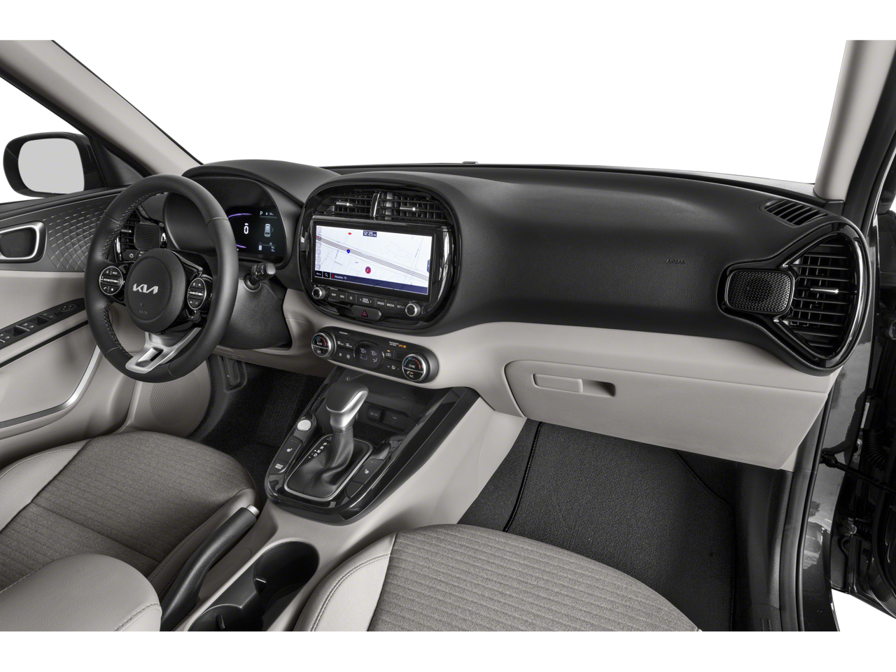 Steel Gray 2023 Kia Soul EX FWD CVT 2.0L I4 DOHC Soul EX, 4D Hatchback, 2.0L I4 DOHC, CVT, FWD, Steel Gray, Black Cloth, 17 Alloy Wheels, 4-Wheel Disc Brakes, 6 Speakers, ABS brakes, Air Conditioning, Alloy wheels, AM/FM radio: SiriusXM, Apple CarPlay & Android Auto, Auto High-beam Headlights, Automatic temperature control, Brake assist, Bumpers: body-color, Cargo Seatback Up Protection, Carpeted Floor Mats, Compass, Delay-off headlights, Driver door bin, Driver vanity mirror, Dual front impact airbags, Dual front side impact airbags, Electronic Stability Control, Emergency communication system, Exterior Parking Camera Rear, Front anti-roll bar, Front Bucket Seats, Front Center Armrest, Front dual zone A/C, Front reading lights, Front wheel independent suspension, Fully automatic headlights, Heated door mirrors, Heated Front Bucket Seats, Heated front seats, Illuminated entry, Leather Shift Knob, Leather steering wheel, Low tire pressure warning, Navigation System, Occupant sensing airbag, Outside temperature display, Overhead airbag, Overhead console, Panic alarm, Passenger door bin, Passenger vanity mirror, Power door mirrors, Power driver seat, Power moonroof, Power steering, Power windows, Premium Woven & Tricot Cloth Seat Trim, Radio data system, Radio: AM/FM/MP3/HD Audio System, Rear seat center armrest, Rear window defroster, Rear window wiper, Remote keyless entry, Speed control, Speed-sensing steering, Split folding rear seat, Steering wheel mounted audio controls, Tachometer, Telescoping steering wheel, Tilt steering wheel, Traction control, Trip computer, Variably intermittent wipers, Wheel Locks.